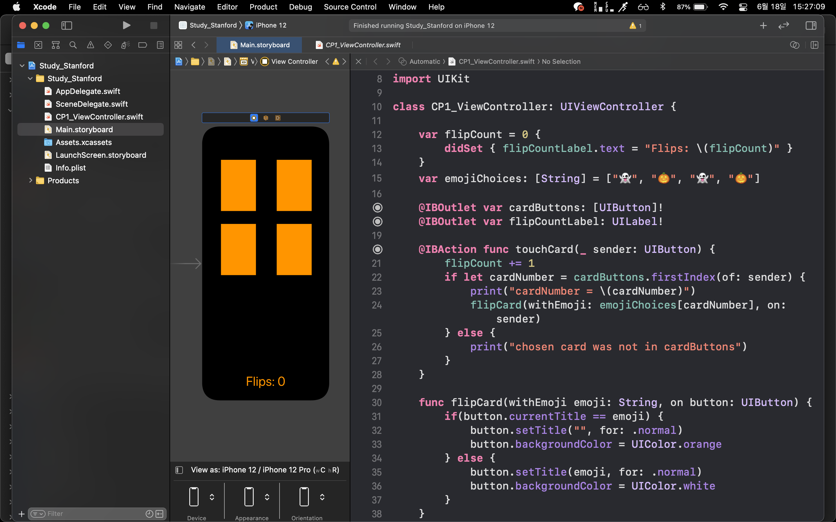 | [iOS 스탠포드] Assignment 1 : Concentration (0) | 2021.07.05 |